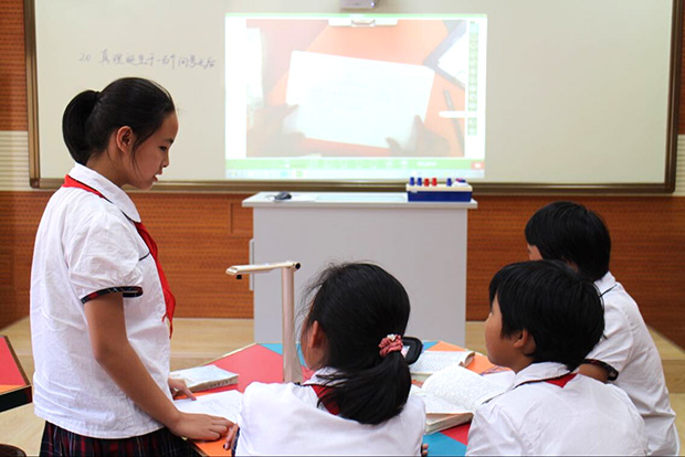 在課堂上,學(xué)生分組學(xué)習(xí)和討論課題,在自己座位上向同學(xué)展示自己解題過程;教師也可以隨時(shí)走下講臺,展示和分析學(xué)生典型問題,在輕松高效地師生互動過程中,實(shí)現(xiàn)真正意義上的翻轉(zhuǎn)課堂。