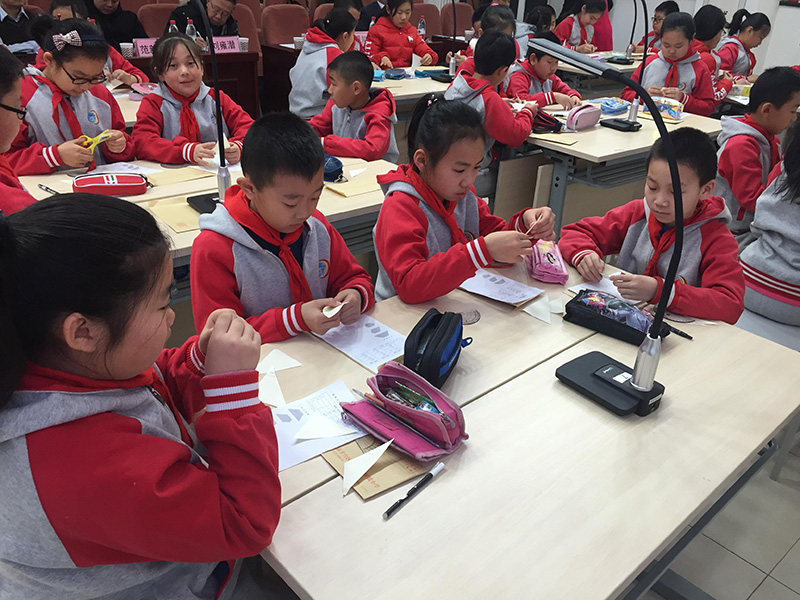 主會議室,來自北京市門頭溝龍泉小學的解春琴老師及北京市豐臺區(qū)師范學校附屬小學的楊爽老師分別運用吉星無線微錄儀給學生們上了兩堂生動有趣的數(shù)學互動課,讓學生們在歡樂和互動中掌握了知識。