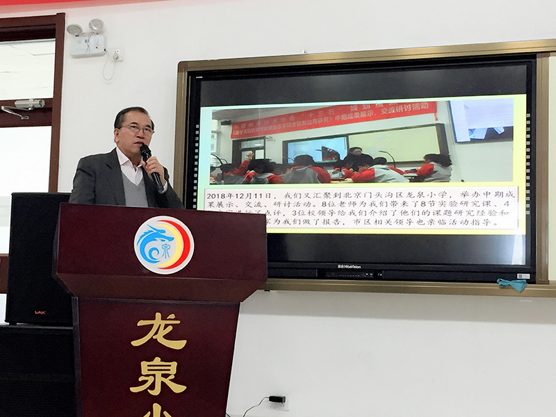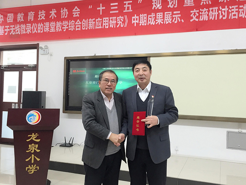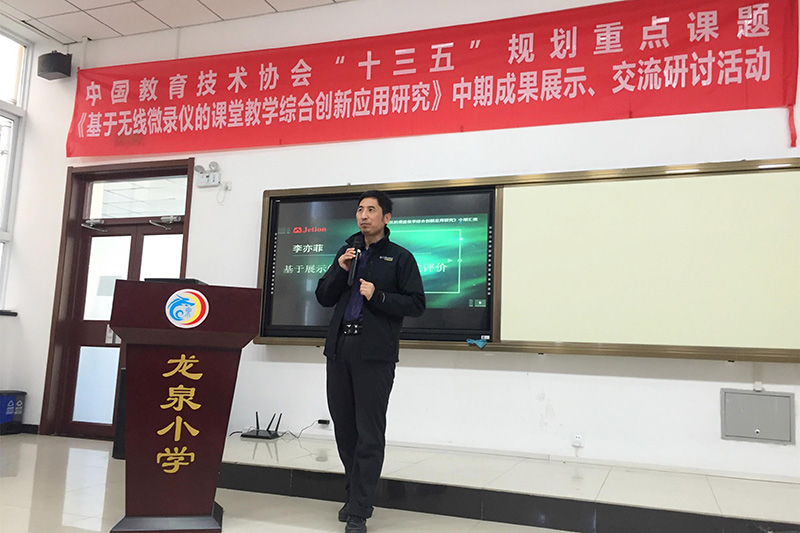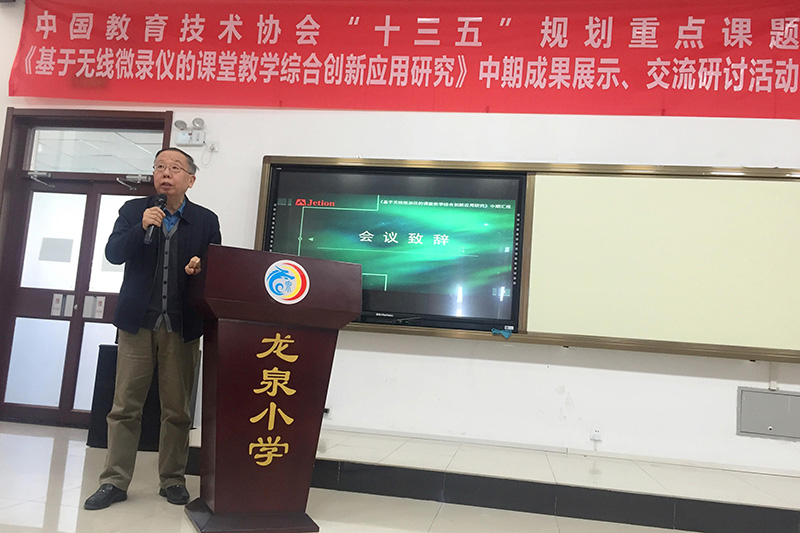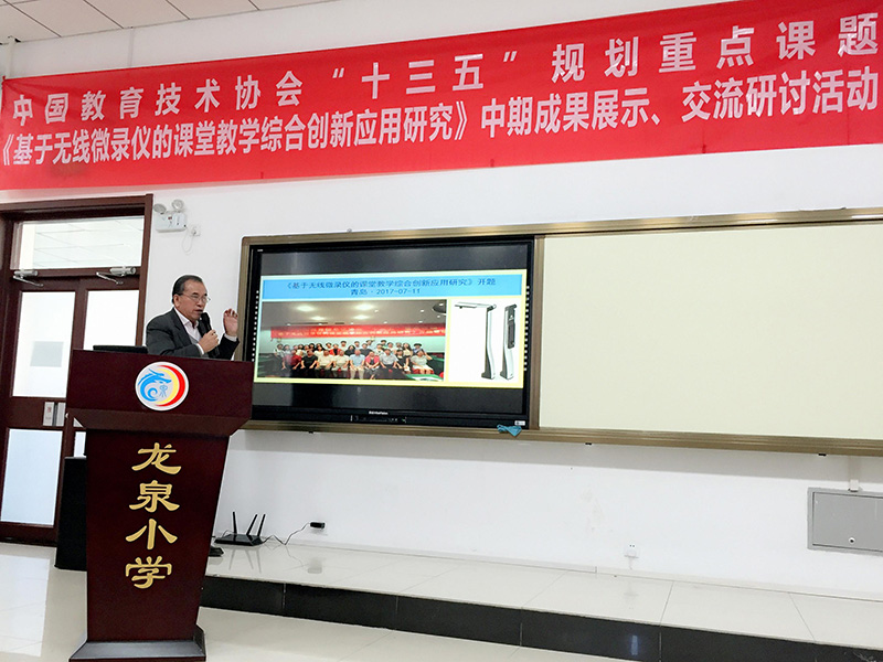 為探索互聯(lián)網(wǎng)時代教育發(fā)展的新形態(tài)和有效支持融合創(chuàng)新的新技術和新方法,2018年12月11日,由中國教育技術協(xié)會學術委員會《基于無線微錄儀的課堂教學綜合創(chuàng)新應用研究》總課題組主辦、北京市門頭溝龍泉小學協(xié)辦、廣州市吉星信息科技有限公司承辦的中國教育協(xié)會“十三五”重點課題《基于無線微錄儀的課堂教學綜合創(chuàng)新應用研究》中期成果展示研討會在北京市門頭溝龍泉小學隆重舉行。