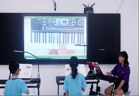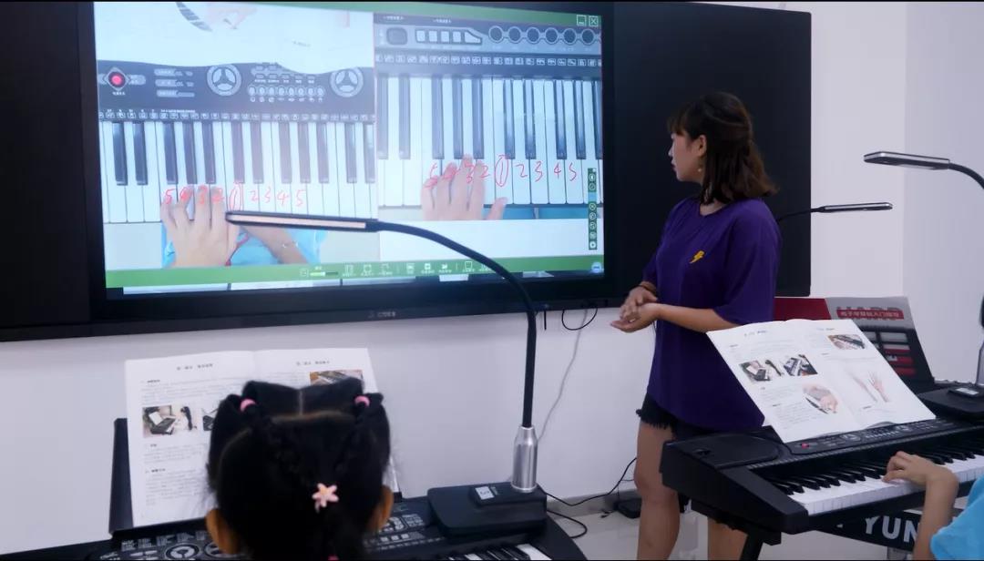 老師通過互動終端,將自己的彈奏示范操作大屏幕展示,每個學生可以即時地看到老師的彈奏過程、手臂動作等細節,直觀地掌握課程要點。