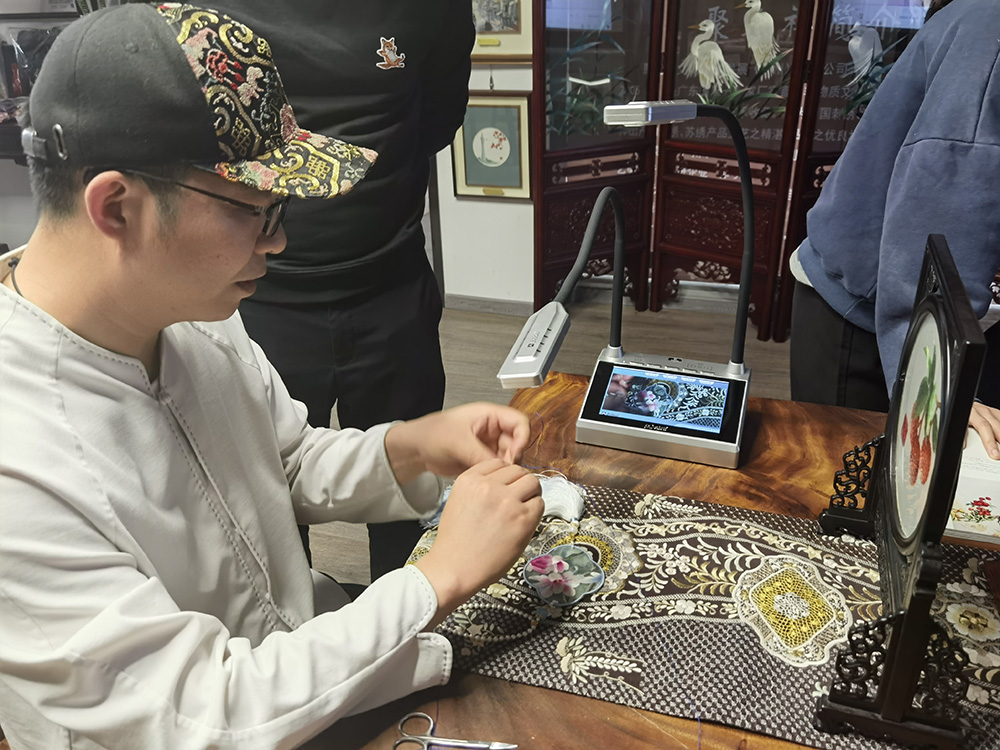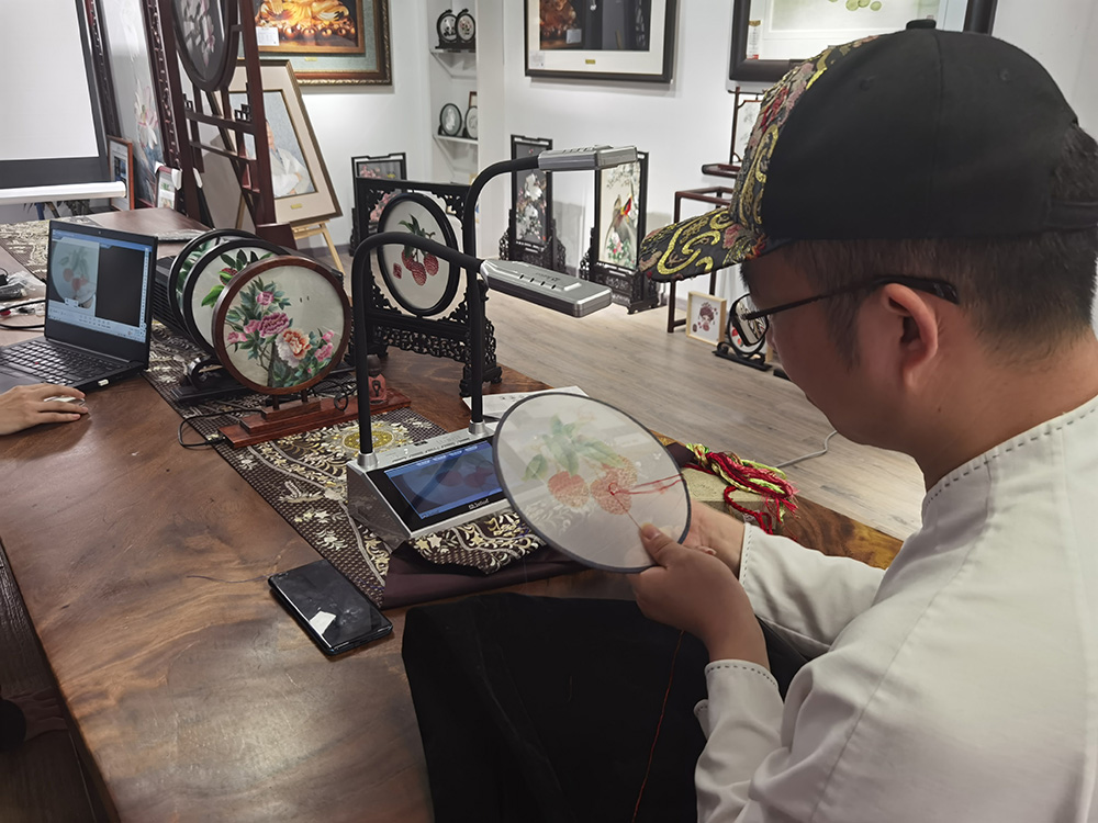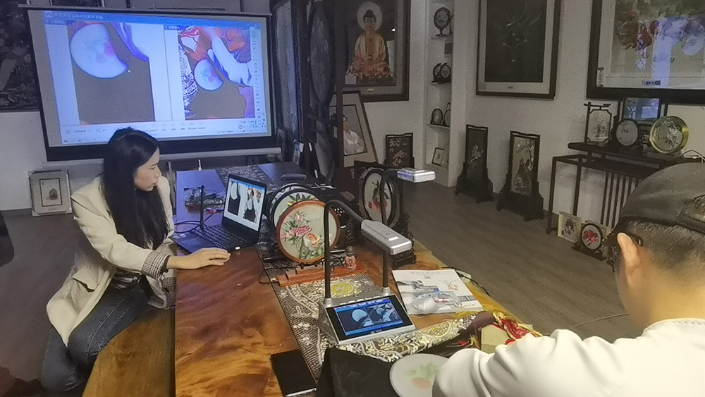 結合吉星強交互專遞實訓系統,能夠實現廣繡遠程互動教學。細致到桌面,無論是教授者還是學習者,都能遠程清晰展示。