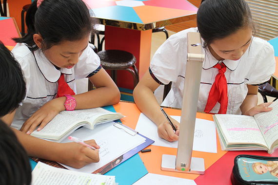 小美是某小學五年級的學生,她的書法作品一直得到老師和學生的廣泛認可,每次面對老師的贊賞和同學們羨慕的眼神,小美都非常開心,充滿學習的動力,而同學們也都以她作為榜樣,相互促進,小美也非常愿意幫助同學們共同學習,班級書法學習氛圍日益濃厚。這節書法教學課,小美使用了吉星的無線視頻展臺作為展示設備,在架設連接好設備,調整角度后,小美拿起了毛筆,在紙上寫下了自己優美的文字,同學們通過大屏,直接觀看了寫字過程,學習了小美的筆鋒走向。