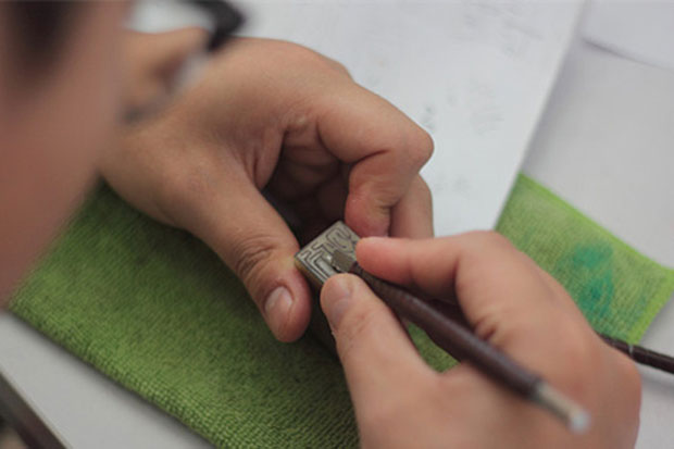 老師示范篆刻過(guò)程
