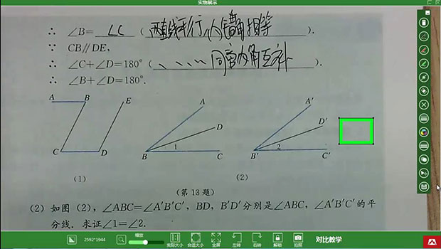 軟件上有單欄、雙欄、四欄對比。支持本地文檔調用對比,即時拍照掃描對比,動態與靜態展示對比。在教學過程中,老師可以將范本跟學生作業,或者將多個不同答案的題目進行分屏對比,并且借助旁邊的白板工具對其進行講解批注,直觀而有效,大大提升了老師的教學效率。