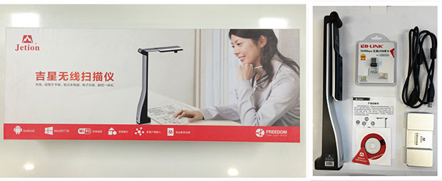 在拿到這款吉星無線視頻展示臺時,精美的彩印包裝盒就給我的第一印象非常好:感覺像是收到了一個禮物!打開會發現,除了一根USB充電線、一個鋁合金底座、一個無線網卡、一張軟件安裝光盤、一張說明書和保修卡之外,就是一款非常小巧的展臺主體,它看起來非常簡約精致。給我的印象是:這是一款便攜式展臺。