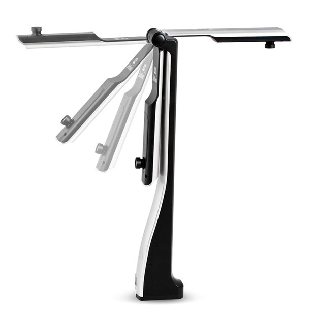 整個產品外觀上最特別的莫過于拍攝桿270°旋轉折疊的設計,鏡頭可以折疊收起到直立的支桿上。之前我見過很多90°折疊拍攝或鵝頸式設計的展臺,像這樣的整體直立式270°非常新穎。據了解,這樣設計吉星廠家的專利,270°旋轉設計有利于教師多角度捕捉立體實物,而不需要移動視頻展臺,兼顧課堂活動和授課者,這兼職成了一個簡易的錄播系統!