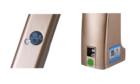 產品下部正面是電源開關,背面是電源接口。但與有線展臺不一樣,無線展臺的電源接口和USB線用于充電而非數據傳輸,也就是說,這款展臺不用插電使用,而且有效距離遠達直徑50米范圍,你可以移動到教室的任何地方使用。