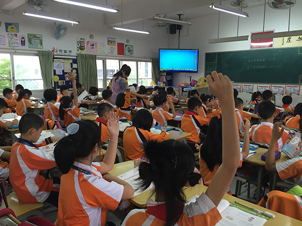 實物展臺:無線傳輸讓老師不但能在講臺上展示教材習題、課件、實物,還能移到學生課桌,去展示學生的學習情況,現在的學生表現欲都比較強,這不,能同步到大屏幕,大家都爭先恐后回答問題了。