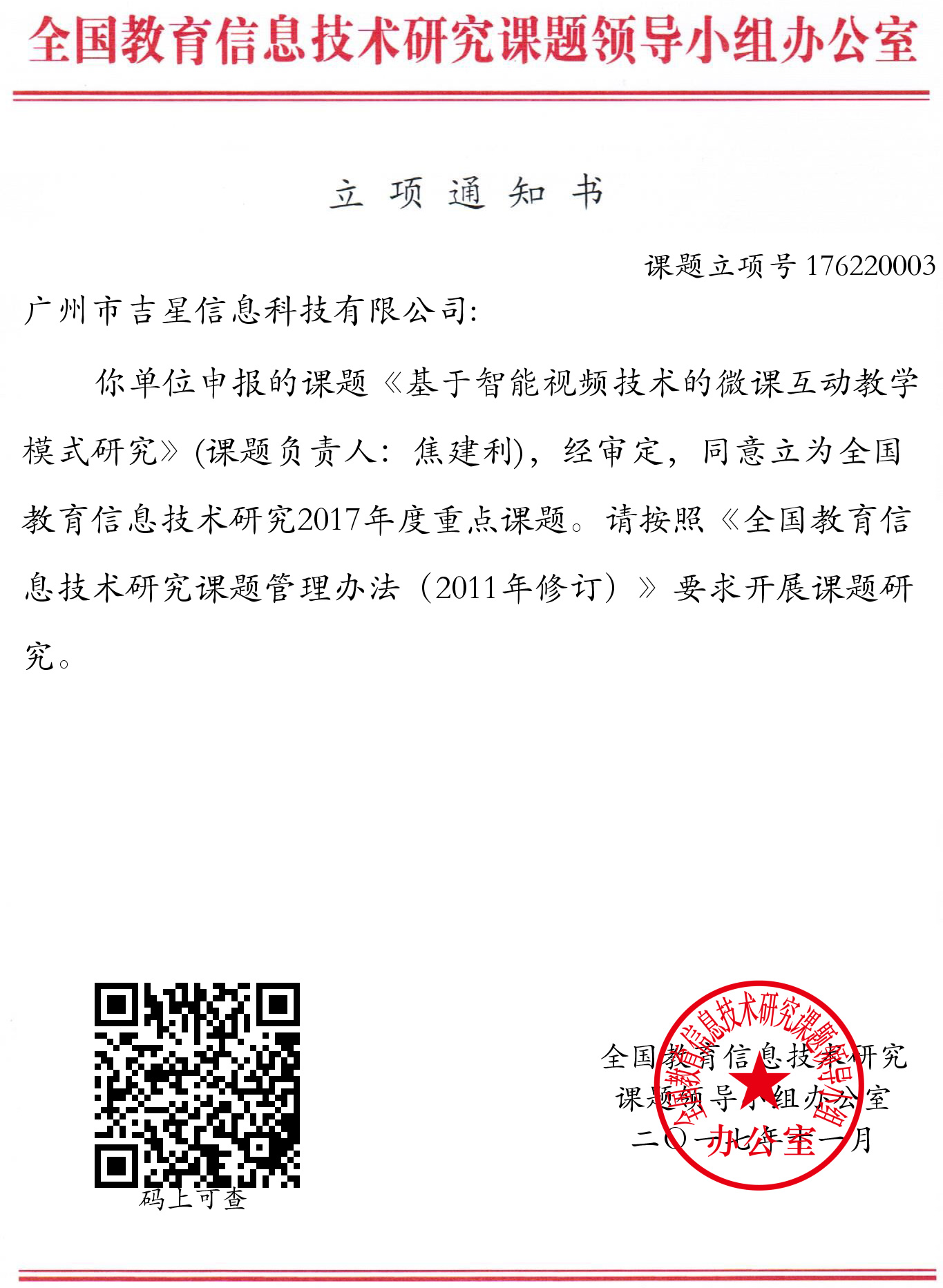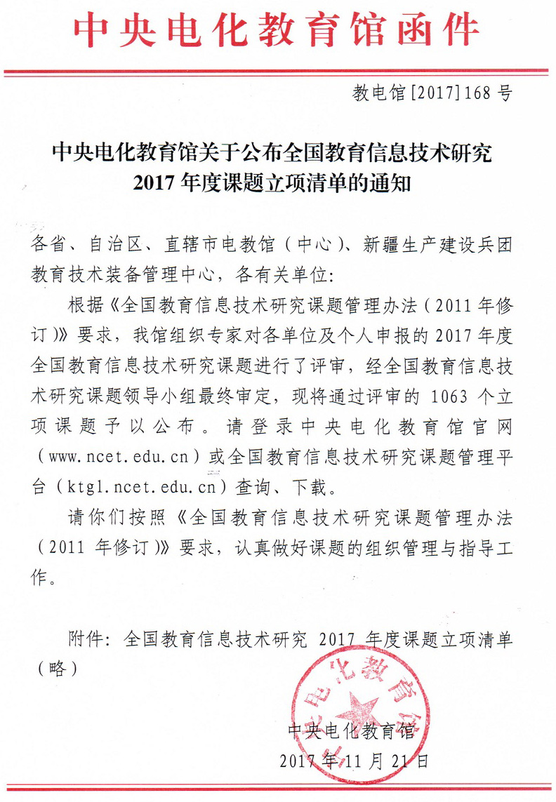 第一條 本課題是全國教育信息技術研究課題領導小組辦公室(以下簡稱“課題辦”)立項的全國教育信息技術研究重點課題(課題立項號:176220003)。