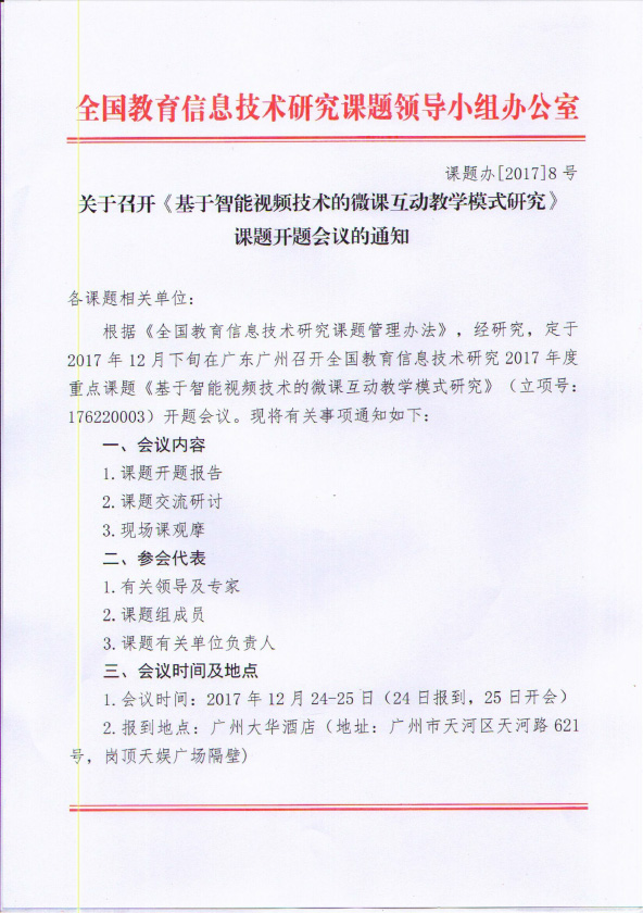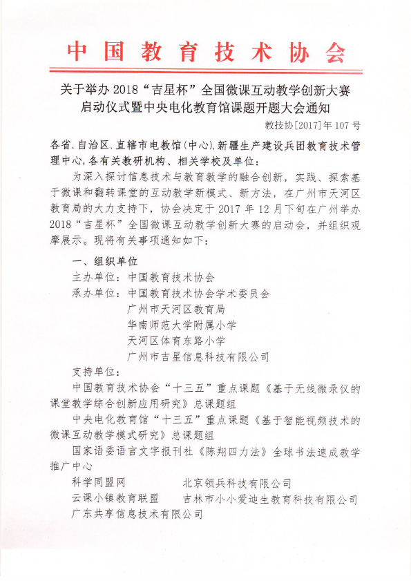 為推進重點課題研究工作的深入開展并深化課堂教學應用,12月25日,中央電化教育館、中國教育技術協會兩家重磅教育機構同期舉辦的年度盛宴——由華南師范大學信息技術學院教授焦建利教授領銜的【中央電化教育館“十三五”重點課題《基于智能視頻技術的微課互動教學模式研究》開題研討會】、中國教育技術協會主辦的【2018“吉星杯”全國微課互動教學創新大賽啟動儀式】暨廣州市天河區教育局主導的【“互聯網+教育”全國教師協同發展研討會】,將在廣州華南師范大學附屬小學和廣州市天河區體育東路小學隆重舉行!
